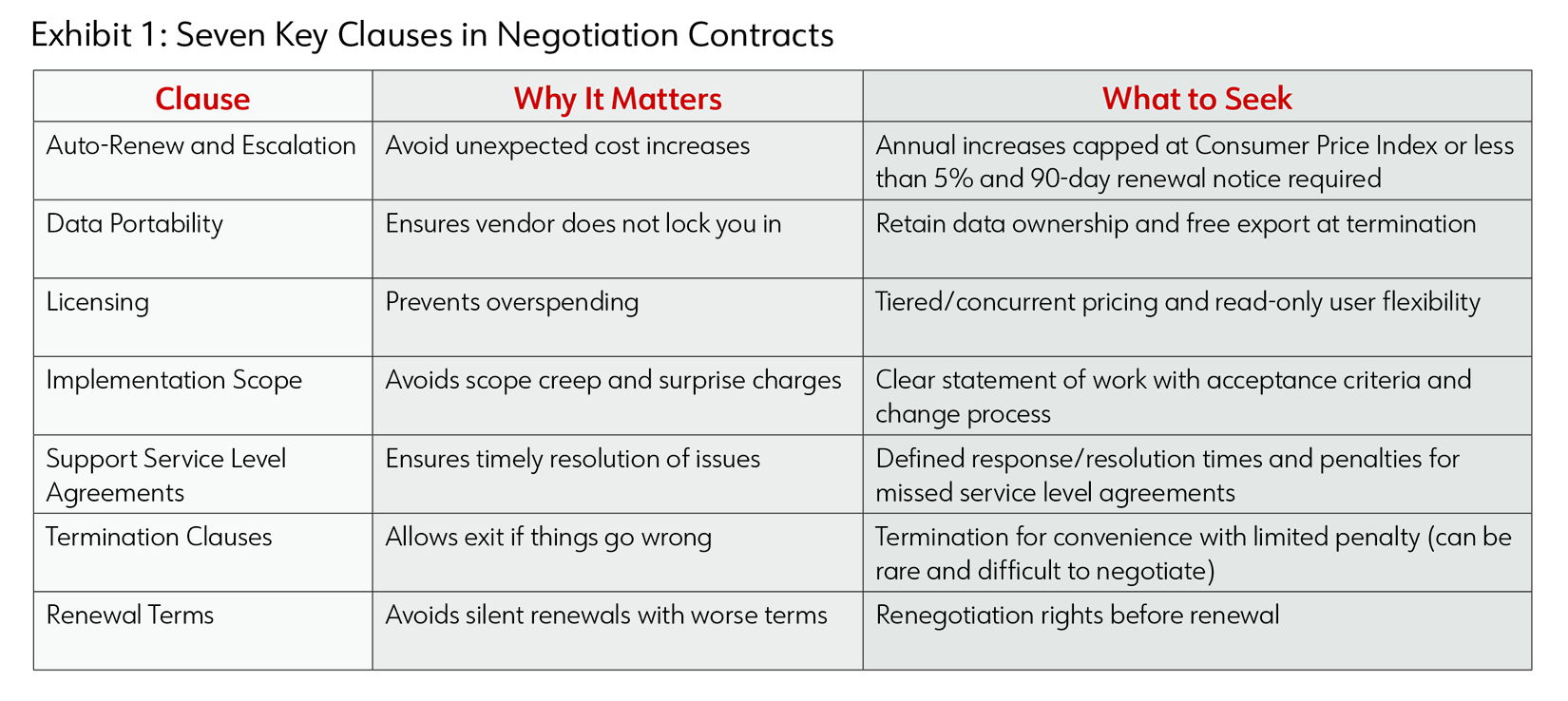 Exhibit 1 offers a snapshot of seven key clauses to monitor closely.