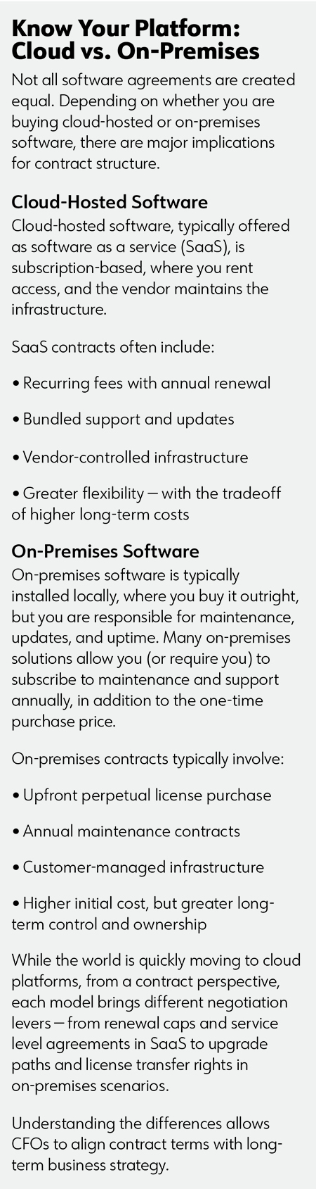 Those cues can influence the initial offer you receive, often to your disadvantage. But the good news is that almost everything in a software agreement is negotiable, including licensing models, pricing structures, data ownership terms, implementation timelines, service and technical support, termination clauses, and even access to training resources.